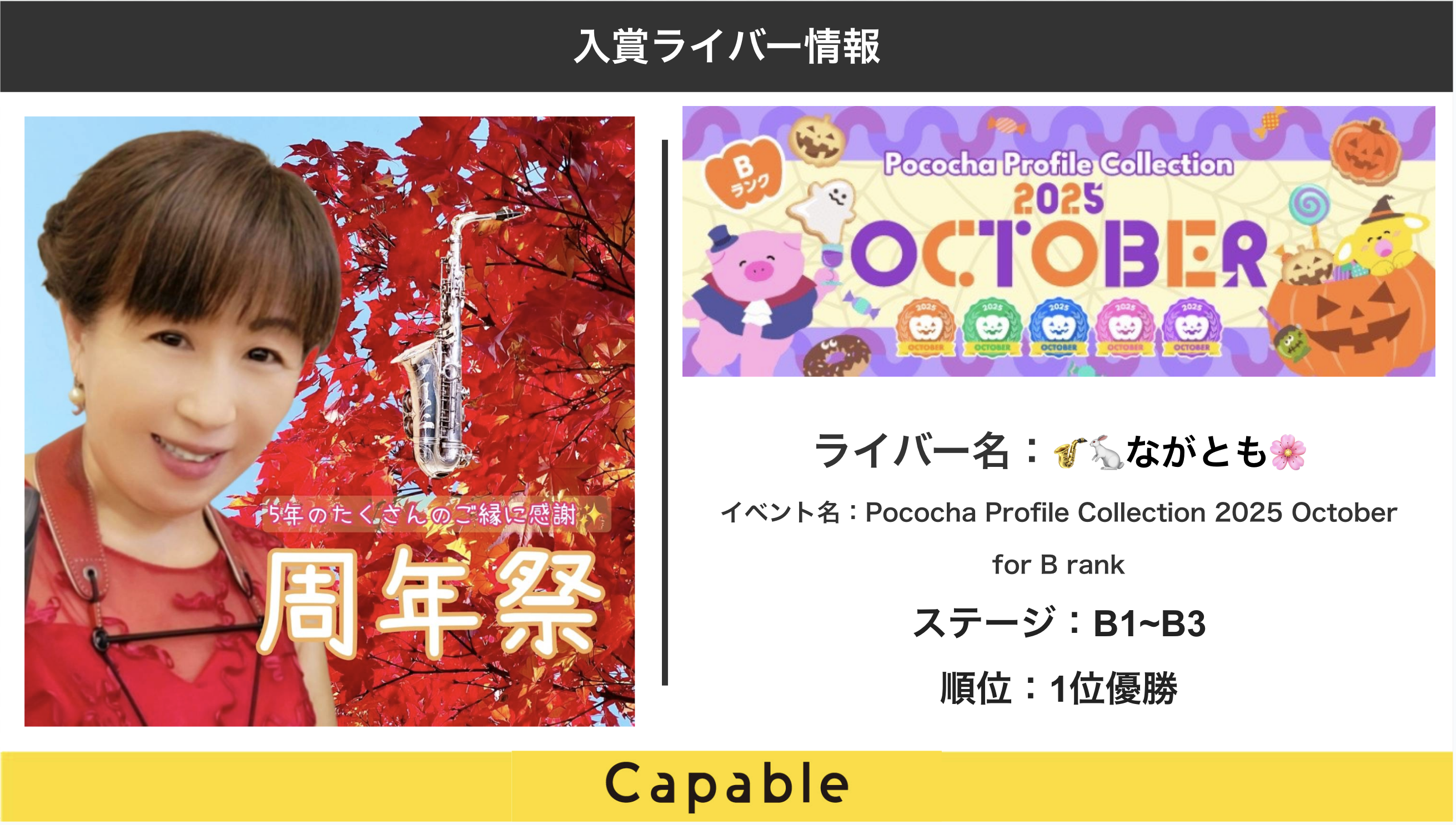 2025年10月6日開催 Pococha Pococha Profile Collection 2025 October for B rank イベント1位優勝致しました。